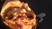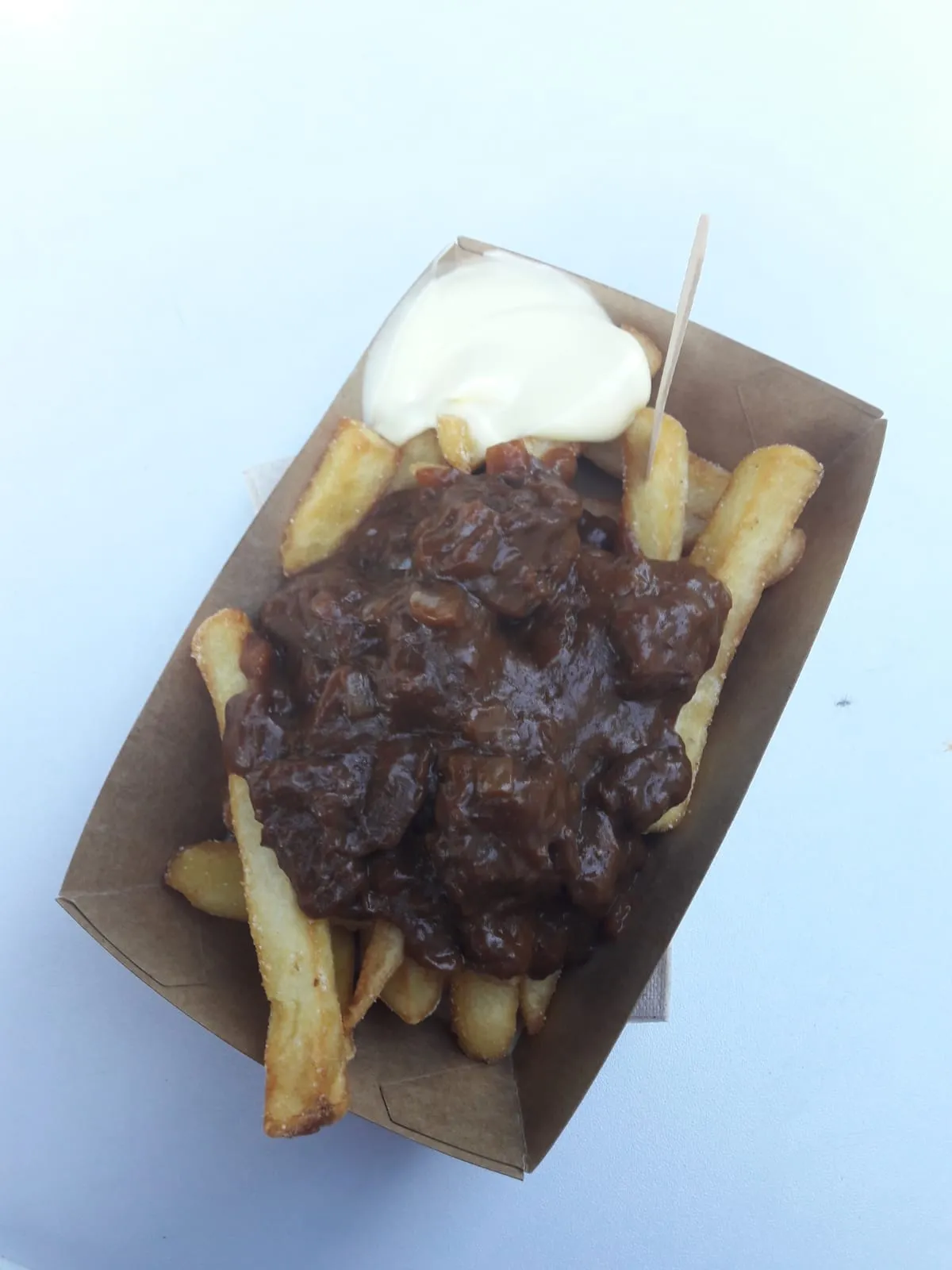 Fotogeniek is het allerminst, zo'n bak friet met stoofvlees. Maar in de vreemde, chaotische wereld van Lowlands heb je soms gewoon het comfort van een flinke kwak stoof nodig. Deze is heel behoorlijk met zachte smakelijke stukken vlees erin. De friet is ook goed, lekker dik en toch knapperig. Minpuntje: wel veel te zout.