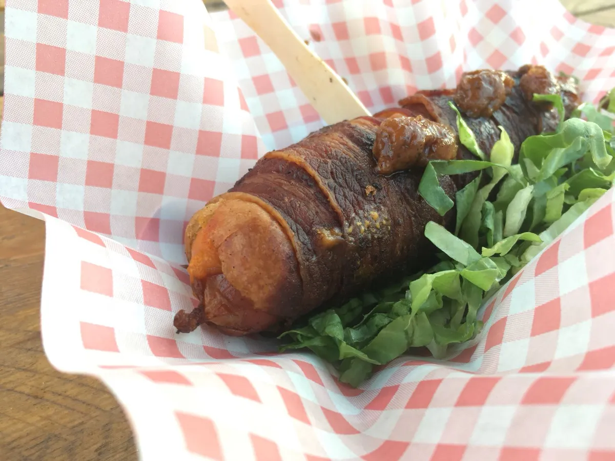 Wat zouden ze bij Hans Worst hebben gedacht? Hoe kunnen we zoveel mogelijk calorieën in een snack stoppen? Welke combinatie aan vettigheden zuigt meteen alle alcohol in je lichaam op? Het is ze gelukt hoor. De GOAT der vettigheden is de rotdog. Men neme een hotdog, wikkelt die in cheddar en spek, gooit dat in de frituur en lardeert het geheel vervolgens met bierstroop. Dat bedje van slasnippers voor de nodige vitamientjes, en als je wil kun je er nog wat peperchutney overheen gooien voor nog een extra smaakdimensie. Megalekker, natuurlijk, maar daarna mag je alleen nog maar groentesnacks.