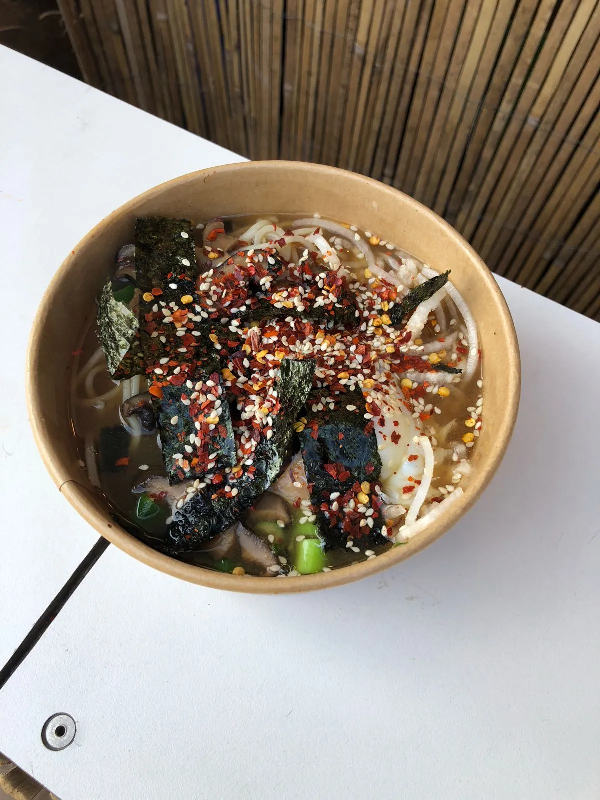 Sinds een jaar of twee is er nieuw - en tevens het allerbeste, katervoedsel op festivals: Ramen. Schaamteloos noodles slurpen, zweten van de veel te veel extra peper die je erin hebt gespoten (niet aanstellen en bedenk: te weinig peper is nog vervelender), een beetje knagen op de lekker taaie paddestoelen en ondertussen al je zout en vochtreserves weer aanvullen. Honger weg, hoofdpijn weg. En dankzij de zoute miso bouillon meteen weer goesting in, ach kom, een pilsner of twee.