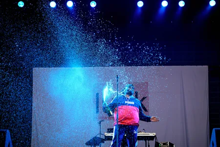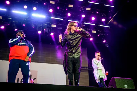 Voor die classics staat het hele veld vandaag ramvol. Nog geen noot gespeeld, en mensen klimmen al op elkaars schouders. Dan moet het openingsschot met ‘Watskeburt?!’ en ‘Deze Donkere Jongen Komt Zo Hard’ nog komen. Tegen de tijd dat ze bij nummero drie zijn, ben je overtuigd. Ze zijn gewoon nog steeds sexy beesten. Willie in zijn Puma joggingpak, Faberyayo in een bloedhete leren jas en zwart glimmende laarzen, Freddy in een doorschijnende regenjas van Chanel. Chique boys zijn het inmiddels. En ondertussen heeft Bas Bron de boel nog wat opgepoetst, kicks wat harder aangezet, overgangen tussen tracks nog wat heftiger gemaakt. En zijn vocoder blijft het geheime wapen van De Jeugd.