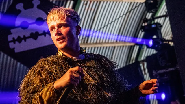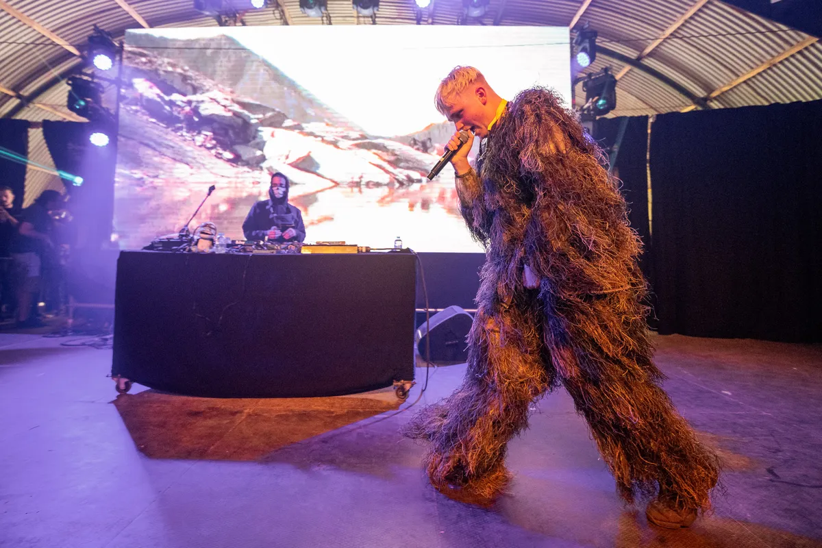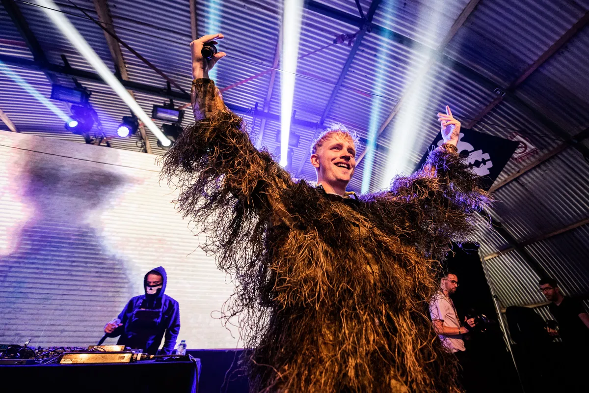 Joost is geen goede zanger, dat weet hij zelf ook. ‘Als je niet kan zingen, dan moet je het ook niet doen’, roept hij nadat zijn dj een stuk vocalen voor zijn rekening genomen heeft. Eigenlijk is Joost ook geen goede rapper, maar als je dat ook door iemand anders zou laten doen, blijft er wel heel weinig over. Twintig is hij, zegt hij meerdere keren. Dat zie je terug aan zijn visuals: alles spreekt dat hij een jaren negentig kind is dat veel op internet zit. Flarden Akira, Dragonball Z, Chin Chan, Pokemon, Spirited Away: veel Japanse tekenfilms. Precies ook de films die op een site als 4Chan een cultstatus hebben.