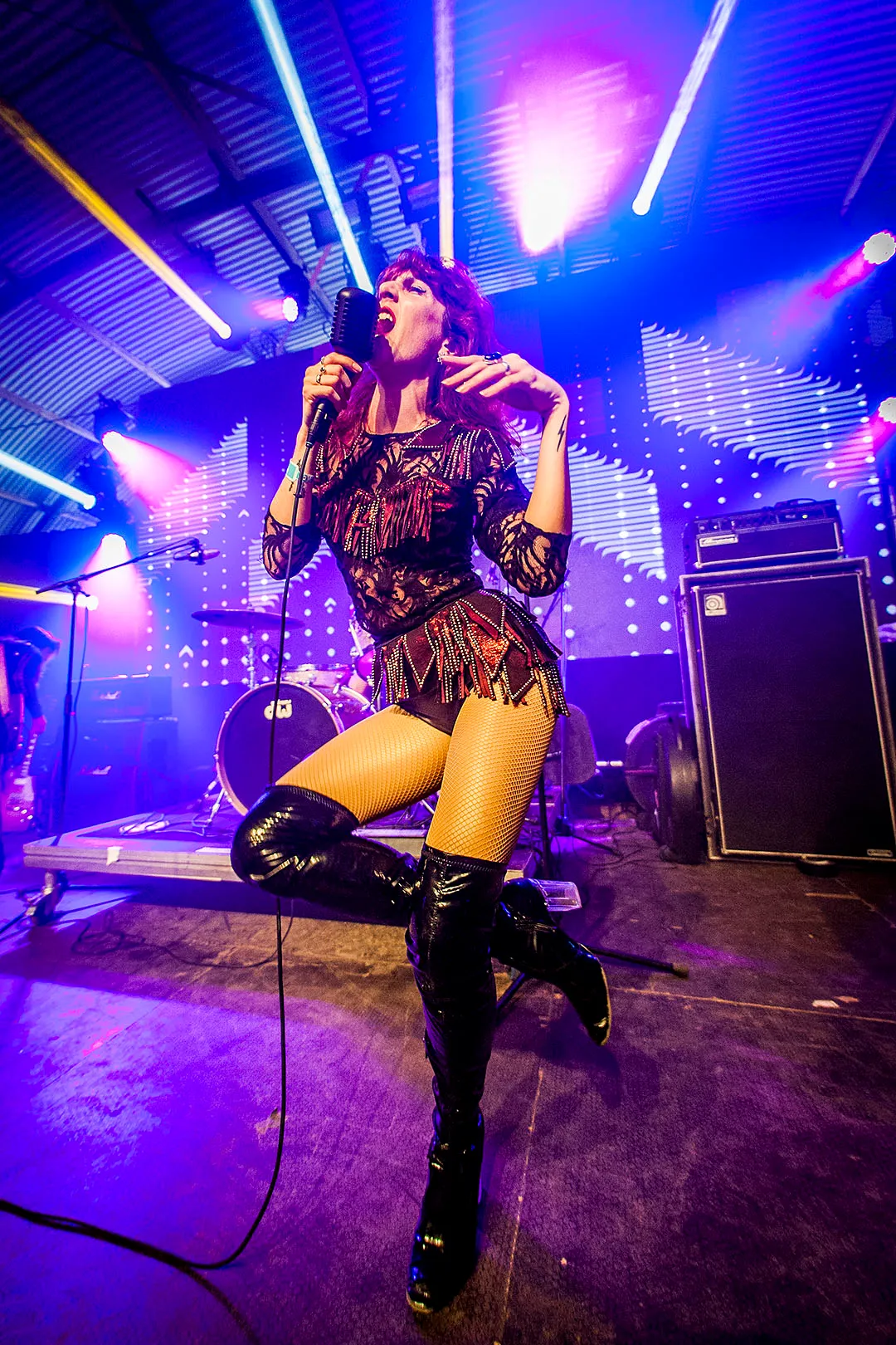 We moeten al snel denken aan girlbands (Spice Girls of dichterbij: Bad Candy), die zorgvuldig gecast zijn op de uiteenlopende personages: Jongensachtige drummer, blonde bebrilde bassiste, coole gitariste en meer sensuele, extravagante en roodharige frontvrouw. Wij mogen vertellen hoe 'How do you do?' in het Nederlands klinkt en dan legt Molly zo uit hoe we Thunderpussy uitspreken. Ok. 'Thanks for having us,' voegt ze er uitdagend aan toe.