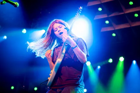 Die meisjes staan vandaag in kleine groepjes te kraaien in de India, waar de Noorse vandaag de dag aftrapt met haar coming-out-anthem ‘Girls’. En met hen de hele tent, want girl in red brengt met haar vijfkoppige band haar lo-fi slaapkamerpop met zo’n aanstekelijke energie dat je wel mee moet hupsen. Dan sta je toch zomaar vrolijk het refrein van ‘Summer Depression’ mee te zingen, het type lichtvoetig liedje met zwaarmoedige teksten waar haar repertoire vol mee staat. Onbeantwoorde liefde, onzekerheid en zelfmoordgedachtes op de schaal van teenage-angst: het komt allemaal voorbij, maar dan zo vrolijk en luchtig verpakt dat het allemaal een stukje minder schrijnend voelt.