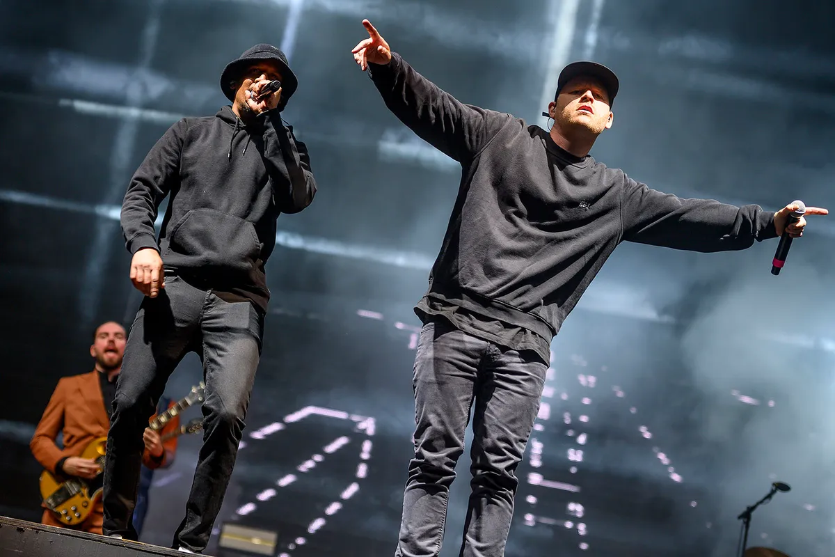 Nu is De Staat natuurlijk begonnen als overzichtelijke rockband met het in 2009 verschenen Wait For Evolution dat voornamelijk een soloproject van Florim was. Het DNA van dat album zit nog altijd in het latere werk verweven - de hoekigheid, het stampende - maar De Staat is toch de diepte en breedte ingegaan. Begint de band op Lowlands nog met in feestelijke hooligan-sferen met ‘Me Time’ en ‘Down Town’, het wordt meteen anders met de vinticious version van ‘Input Source Select’ met die moddervette knipoog naar de Beastie Boys. Iets lastiger is het met het ingetogen ‘Phoenix’ dat visueel spannend is maar net niet dwingend genoeg overkomt. Dat gaat voorspoediger als twee Zwolse gasten vlak erna het podium opkomen.
