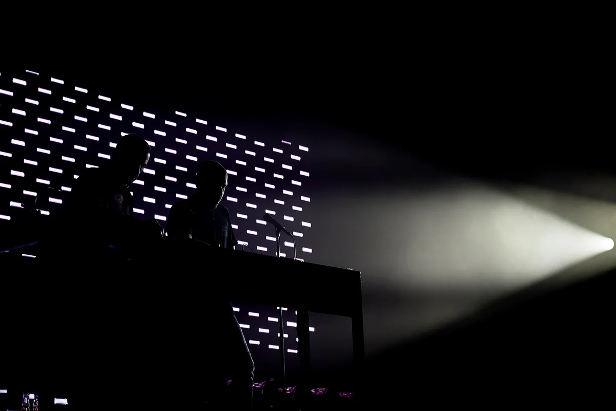 Als Modeselektor daarna gas terug neemt in de set, komt de melancholie naar voren die Moderat zo kenmerkt. ‘I Am your God’ krijgt een ruimtelijke opbouw met ruim baan voor live-zang, wat nog beter tot zijn recht was gekomen als het buiten donker was geweest en die kolossale lichtinstallatie van de Bravo volop zijn werk had kunnen doen. En na zo’n rustmoment? De heipaal weer aan natuurlijk. Het is immers Modeselektor, die weten precies hoe ze de flow in de show gaande moeten houden.