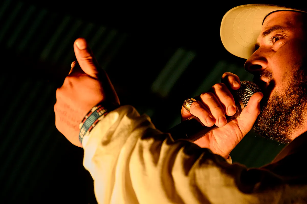 De tranen schitteren in zijn ogen. Als Zwangere Guy een track over zijn traumatische jeugd rapt, dan zie je dat hij het moment weer herbeleeft. En al het gif er vervolgens uit spuwt. ‘Als kind blijf ik altijd op u kwaad, maar als de man die ik nu ben blijf ik altijd uw soldaat, mama.’ Ieder woord weegt hij op zijn tong, voordat hij het eruit gooit. En ieder woord is verstaanbaar, als je tenminste een beetje Vlaams kunt ontcijferen. ‘Gorik, Pt. 1’ heet het prijsnummer, eentje die in zijn thuisland België een kleine aardschok veroorzaakte en van hem direct de spannendste rapper van het land maakte, eentje die met gemak de Ancienne Belgique uitverkoopt.