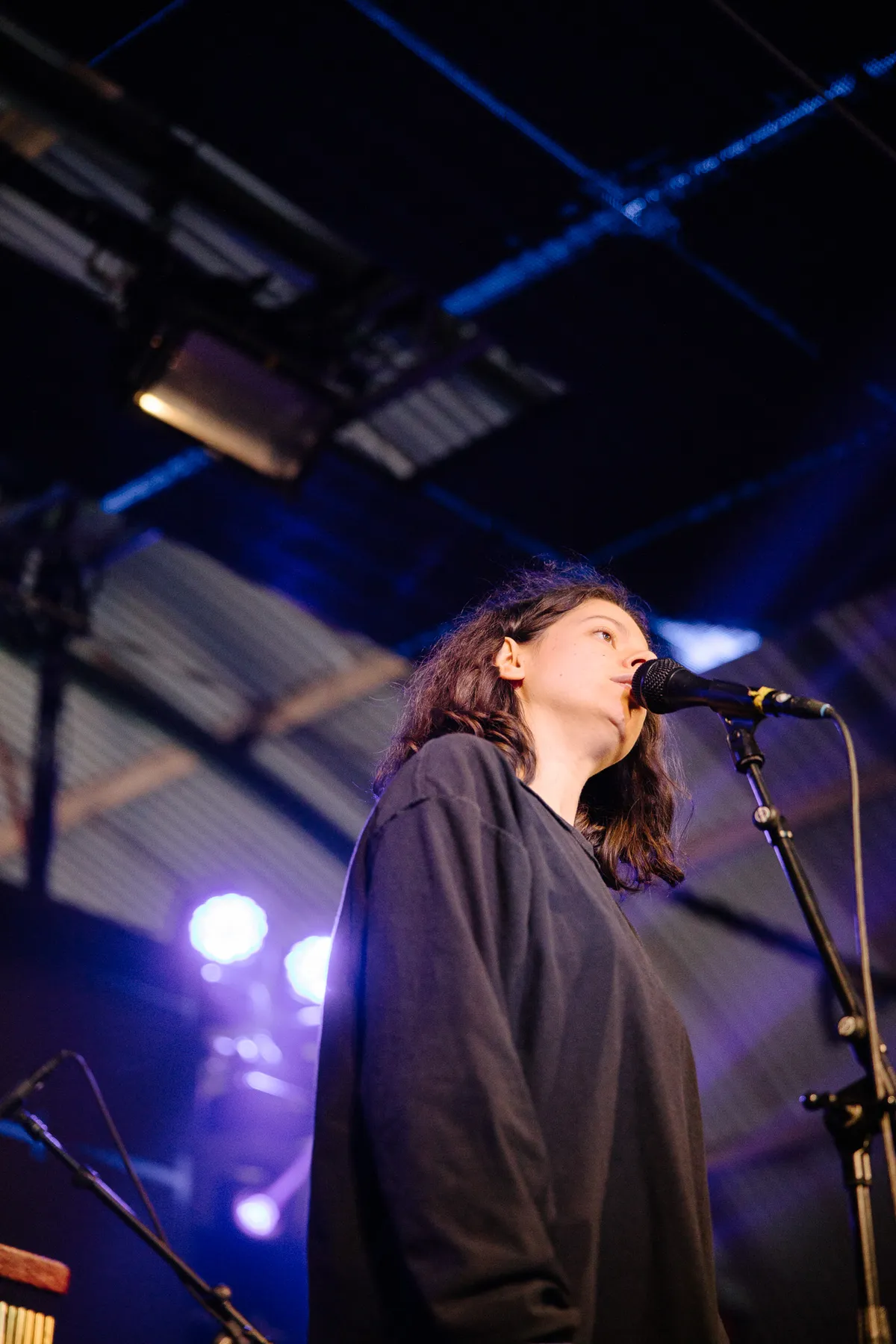 Een opvallende verschijning is Tirzah niet. Grote zwarte slobbertrui, een zwarte, wijde broek, zwarte sneakers, met korte, donkere lokken waar een verlegen gezichtje achter schuilt. Op het podium staat ze vrijwel stil, haar mouwen tot over haar knokkels opgetrokken, terwijl ze zacht voor zich uit zingt. Af en toe laat ze een schuchter lachje op haar gezicht doorbreken wanneer er enthousiast geklap opstijgt of een fan vrolijk fluit, maar contact met haar publiek maakt ze nauwelijks.