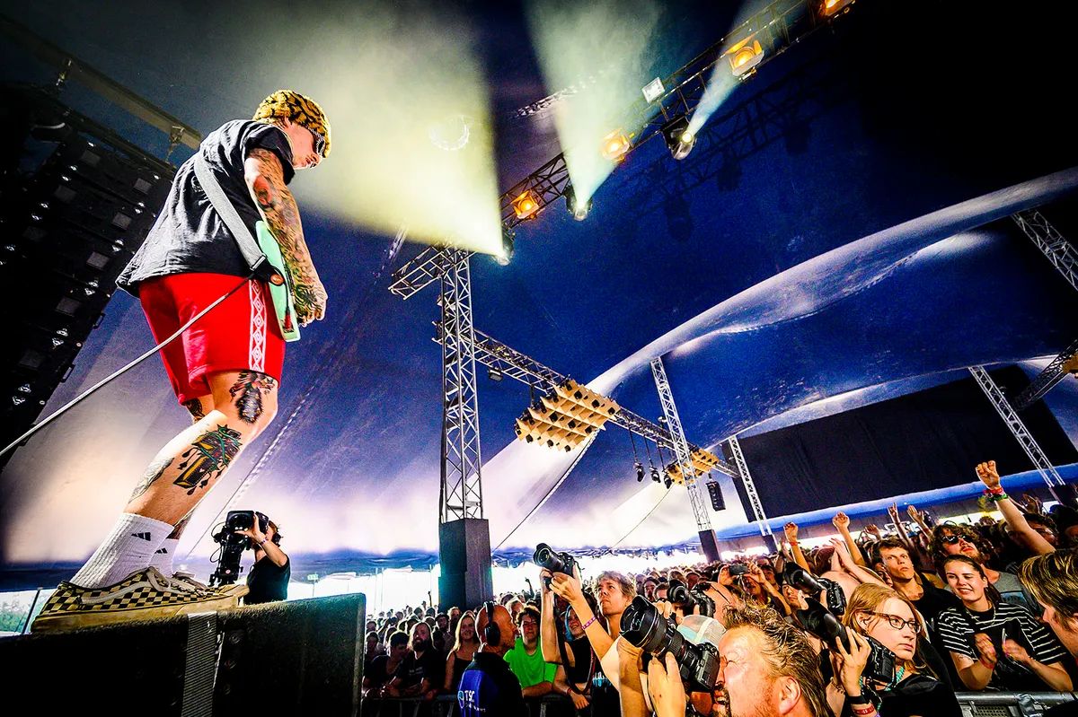 Sinds de Brexit een feit is regent het pissed off gitaarbands op de festivals. Actie is reactie. Maar de twee van Slaves hoefden die verdoemde stemming niet af te wachten om te weten dat het mis zit in hun land. Zij begonnen hun band in 2012 in een klein dorp net buiten Londen, stonden al in 2015 op Lowlands en zijn inmiddels alweer toe aan hun derde plaat. Destijds was nog niet iedereen hier klaar voor. Althans, zo vertelt zingende drummer Isaac Holman: ‘De reden dat we hier vandaag met zijn tweeën staan is dat destijds niemand met ons een band wilde beginnen. Wat moet je dan?! Fuck ze!’