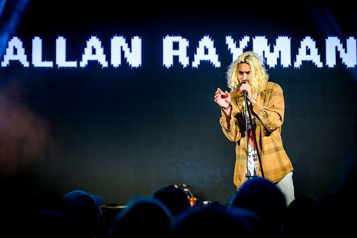 Met inmiddels drie albums op zijn naam en een vierde op komst, speelt Rayman na een paar Paradiso shows en een handvol Nederlandse festivals nu in de X-Ray. Hij komt op in houthakkersblouse met daaronder een Betty Boo -shirt en heeft zijn haar blond geverfd. Een neo-grungy karakter dus. Om hem heen staat.... helemaal niets en niemand. Alle muziek komt uit de computer. Halverwege de show zegt hij daar over: 'Where’s my band? What happened? There was supposed to be a band here. Sorry to let you down.’ Het is een van de grappen die Rayman vertelt in de theatraal lange pauzes die hij tussen de nummers laat vallen. "Are there any clowns in the room?”, vraagt hij ook. Die valt een beetje dood. “I guess it’s too early for clowns.”