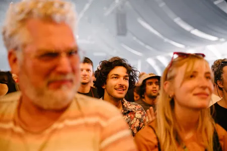 ‘And away we go friends,’ zegt zanger Brooks Nielsen op z’n lekker lullige toon en de band begint midtempo te spelen. De frontman loop op z’n zondagmiddags rond, zingt en praat met kenmerkend snerpende stem, de microfoon ligt losjes in zijn hand. Nielsen had met zijn gele vestje en Elvis- meets rockabillykapsel een personage uit The Hangover 5 kunnen zijn. Het werk van The Growlers heeft een lijzige feel en Nielsen is daar de perfecte verpersoonlijking van.