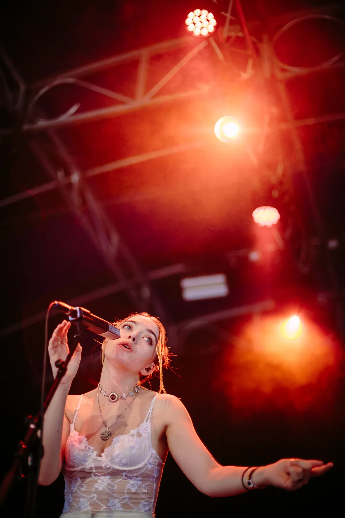 Dit jaar is de eer aan Florence Arman om Lowlands in te wijden. Een fladderige spring-in-het-veld uit Wenen wier Britse tongval verraadt dat ze al een tijdje in Londen bivakkeert. In het verleden werkte ze wat meer achter de schermen met o.a. The Kooks en Dadi Freyr. Haar eigen liedjes gaan over het alledaagse leven van een begin-twintiger. Een voorbeeld: ‘Love’s The Worst’. Zo is het, Florence. ‘Er was een guy,’ zucht ze even later. ‘Ik heb zo’n 500 miljoen liedjes over hem geschreven. En dit is de ALLERLAATSTE. Ik ben er klaar mee. Hij was mijn allerbeste vriend, maar hij heeft me opeens geghost. Vanuit het niets. Ik weet niet waarom, maar hij had een hele rare creepy vriendin.’ Tja. Ze heeft echt een mooie stem, maar haar folkpopliedjes zijn net iets té niets-aan-de-hand, net effe té flauwtjes. Het is heus niet stom, maar wel een beetje bleu. Al helemaal als ze twee liedjes akoestisch uitprobeert, die zo vers zijn dat ze nog helemaal niet geproduceerd zijn.