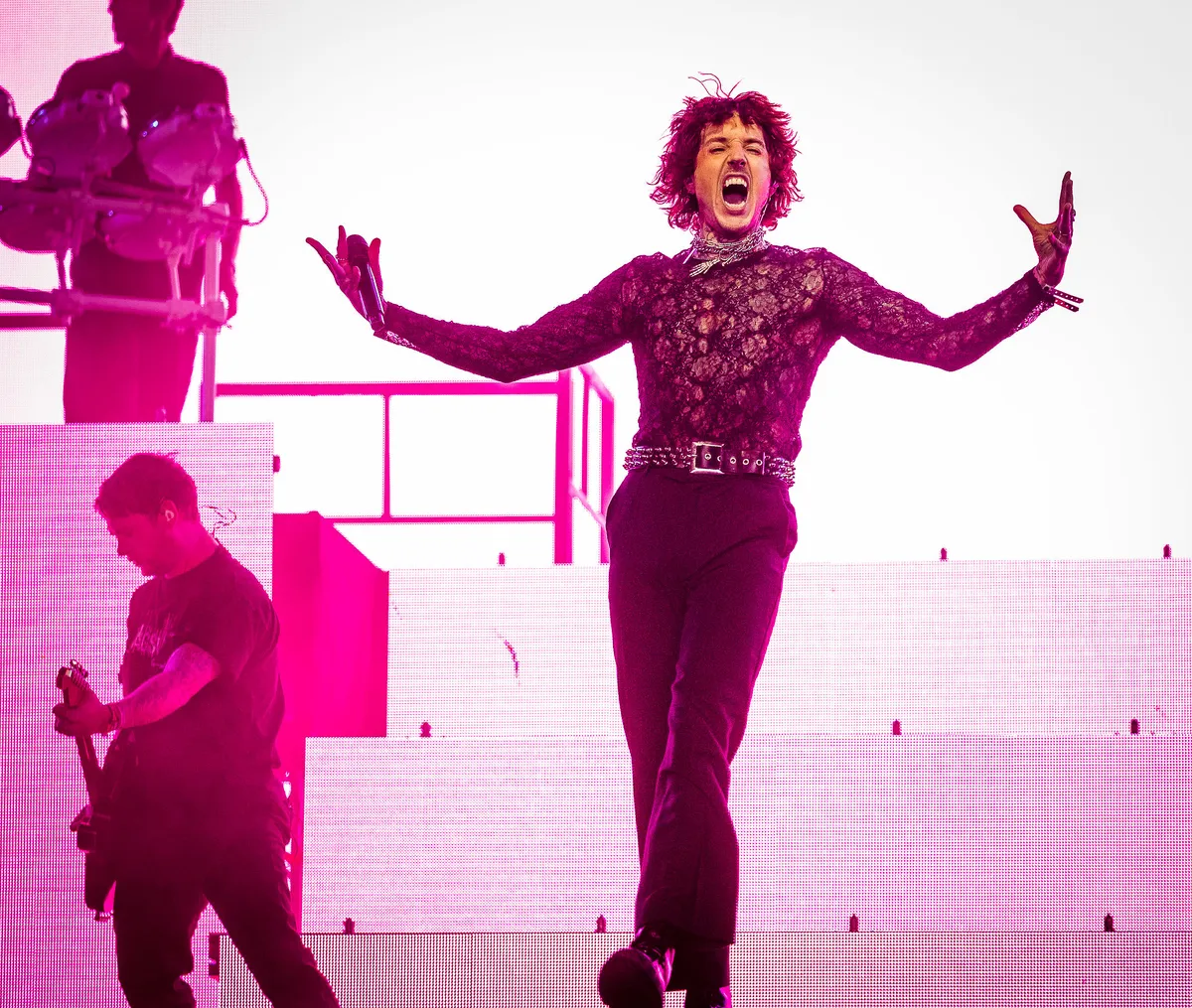 De band kwam later zelf ook terug op het geluid van die plaat, met elk nieuw album werd dat een stuk vriendelijker. BMTH maakt nog steeds meedogenloze metal, maar dat ze vandaag in de Alpha staan, geeft wel aan dat ze een stuk meer mainstream zijn geworden. En dat is niet erg. De opener ‘Can You Feel My Heart’ is een catchy en tegelijkertijd heavy nummer dat door iedereen meegezongen kan worden. Sykes is in zijn kanten longsleeve en hoge, satijnen broek net een ceremoniemeester, die er soms bijna uitziet als een vampier als hij zijn hoekige tanden weer eens bloot lacht naar ons. Hij steekt voortdurend zijn tong uit en vindt alles prima, zolang er maar niemand stil blijft staan als zij spelen. ‘Then we have a focking problem!,’ roept hij in zijn dikke Sheffieldse accent.