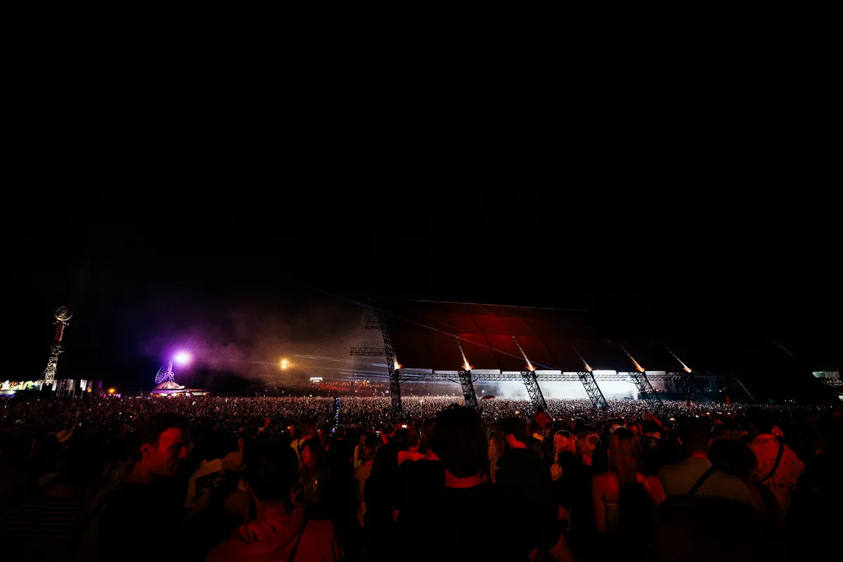 Elk jaar zijn er wel een paar van die shows dat je opeens denkt: nu is het écht druk. Zoals vorig jaar de shows van Fred Again.. en Goldband. Die van Charlotte de Witte is er ook zo een. Tot ver op de hellingen rond het hoofdpodium staat het vol. En het meest opvallende: praktisch iedereen is hard aan het dansen, als je fistpumpen en zittend de schouders wiegen ook meetelt.