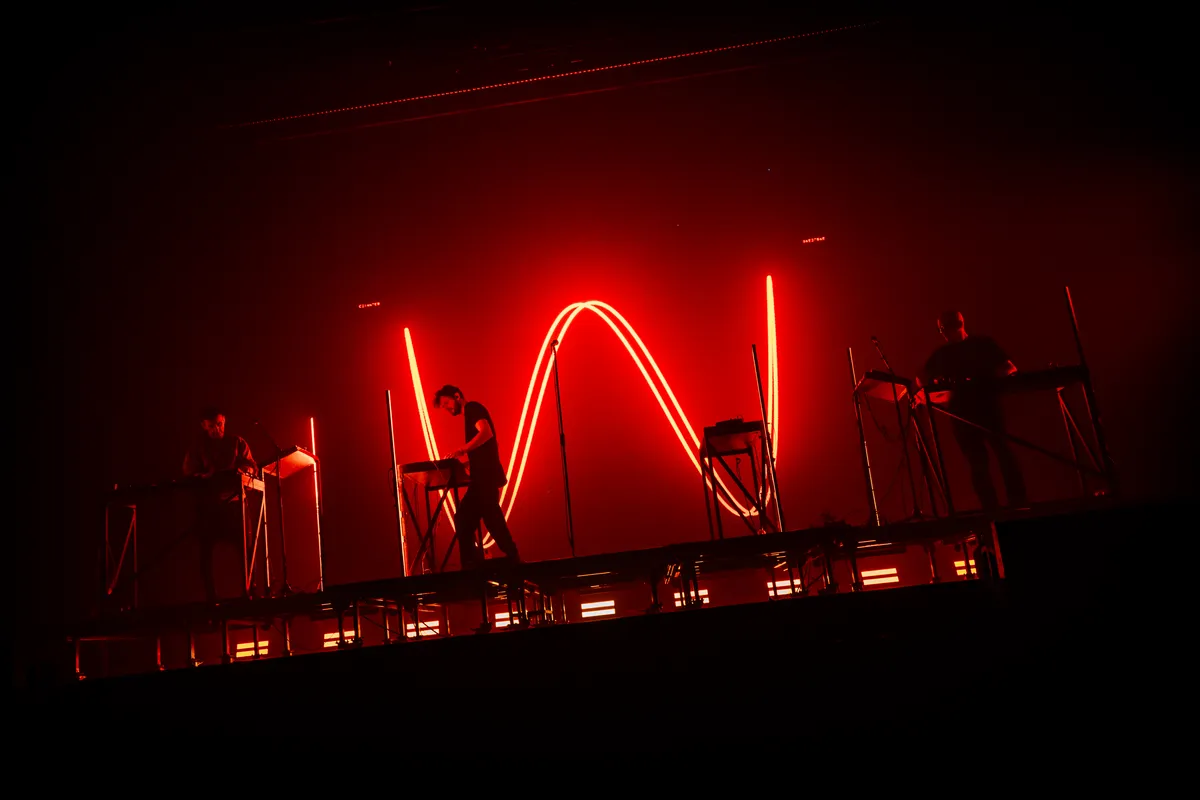 ‘Rusty Nails’ komt erin en dan horen we toch weer die ijzerscherpe stem van Sascha Ring. Die blijft toch de USP van Moderat. Hit ‘Reminder’ fungeert halverwege als rustmomentje. Ook wel grappig dat dit dan een soort downer is voor een groot deel van de Bravo, want voor die hard fans zou dit een hoogtepunt zijn. Dat wordt het uiteindelijk ook wel als ze die vocal hook ‘burning bridges, light my way’ heel lang uitspinnen, waarbij je beseft dat Moderat misschien wel een van de betere elektronische live-acts is van dit weekend. De Bravo is inmiddels in het midden in het dak rondom verlicht alsof we in de Gashouder staan. Dit is groter, maar Moderat komt toch best dichtbij.