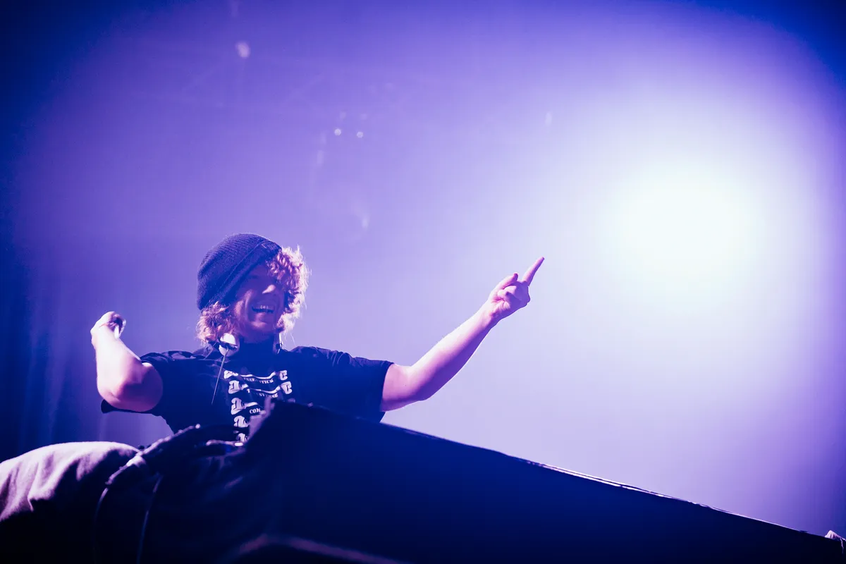Maar dan glibbert gladde paling zich omhoog naar de draaitafels. Binnen drie minuten trakteert hij de India op ADHDance interpolaties van ‘California Gurls’, ‘Hello’ en ‘Barbie Girl’. Een stem van Google Translate geeft aan wanneer je de drop kunt verwachten, en spoiler: dat is om de vijf seconden. Zo recht voor je bakkes, voordat je überhaupt doorhebt wat er gebeurt. De fistpumpende aal krijgt minstens evenveel energie terug als hij uitdeelt. Het kan hier even niet extreem genoeg. Maar het is toch een beetje zielig voor die jongen die net een half uur onophoudelijk naast je stond te springen, en nu wat beduusd voor zich uit staart. Niet iedereen kan of wil hier natuurlijk chocola van maken. Daarmee vergeleken is het bij SPFDJ een keurig theekransje. De Berlijnse ster van de tiende versnelling sluit de Bravo af met de keiharde techno waar we de Herrensauna-resident van kennen. Maar zelfs daar blijft het gezellig, met relatief veel ruimte voor melodieuze uitstapjes en een prima danser-zombie-verhouding.