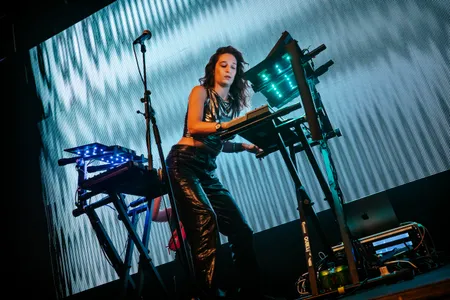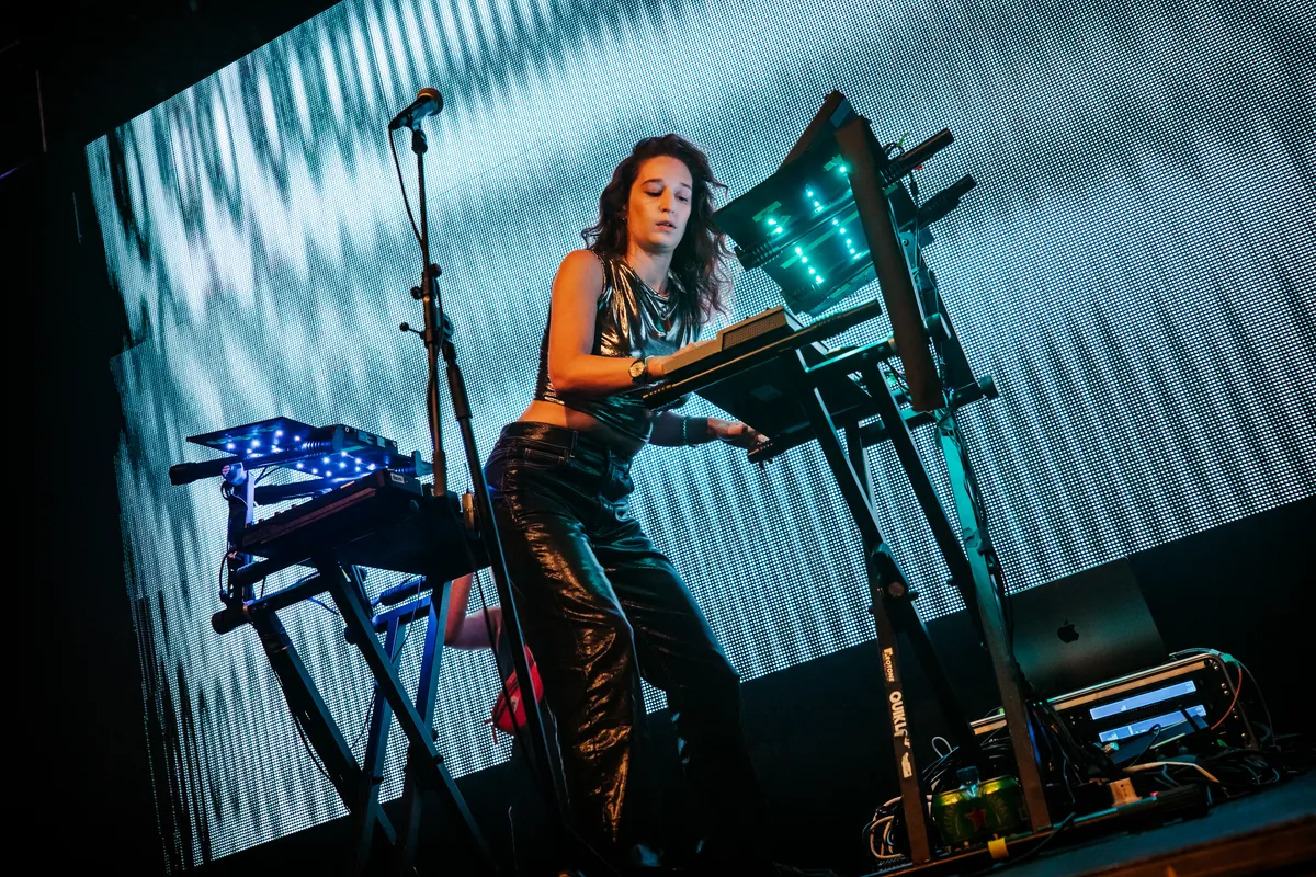 Een vrouw solo op het podium. Dat is wat Elkka wil zijn. Dus daar staat ze, draaiend en dansend in de minimale ruimte tussen haar apparatuur, soms met het gezicht richting de zaal als ze in de microfoon zingt. De Welsche Emma Kirby gedijt op positiviteit. Muziek is de toverstaf waarmee ze met een glimlach euforie tevoorschijn tovert.