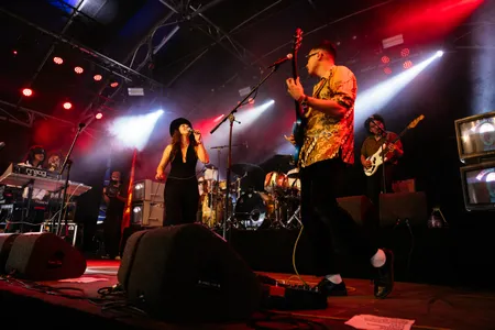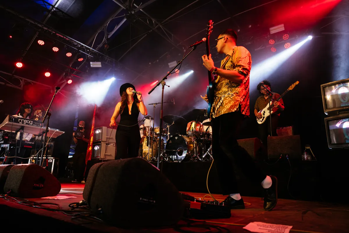Net zoals Altin Gün zich vastbijt in klassiekers en traditionals, bouwt ook Nusantara Beat voort op een basis die lang geleden gelegd is. Single ‘Borondong Garing’ is bijvoorbeeld een bewerking van een song van Rudy Rusari uit de jaren zestig, ‘Djanger’ een traditional. Maar ach, waarom zou je het wiel opnieuw uitvinden als je een Lowlands-tent kunt vullen met mensen die deze muziek niet kennen? Het geluid van de band hinkt nog teveel op twee gedachten: gitarist Jordy Sanger duwt steeds richting een stoer rockgeluid, terwijl toetsenist Rouzy Portier liever ‘Funky Worms’ uit zijn synthesizer strooit. Dat kan natuurlijk allebei - waarom ook niet - maar nu vechten ze allebei nog wat te veel om aandacht, terwijl achter op het podium de percussie-broers Sonny en Gino Groeneveld veel meer in dienst van de groove spelen.