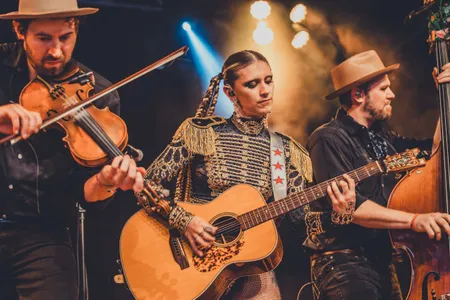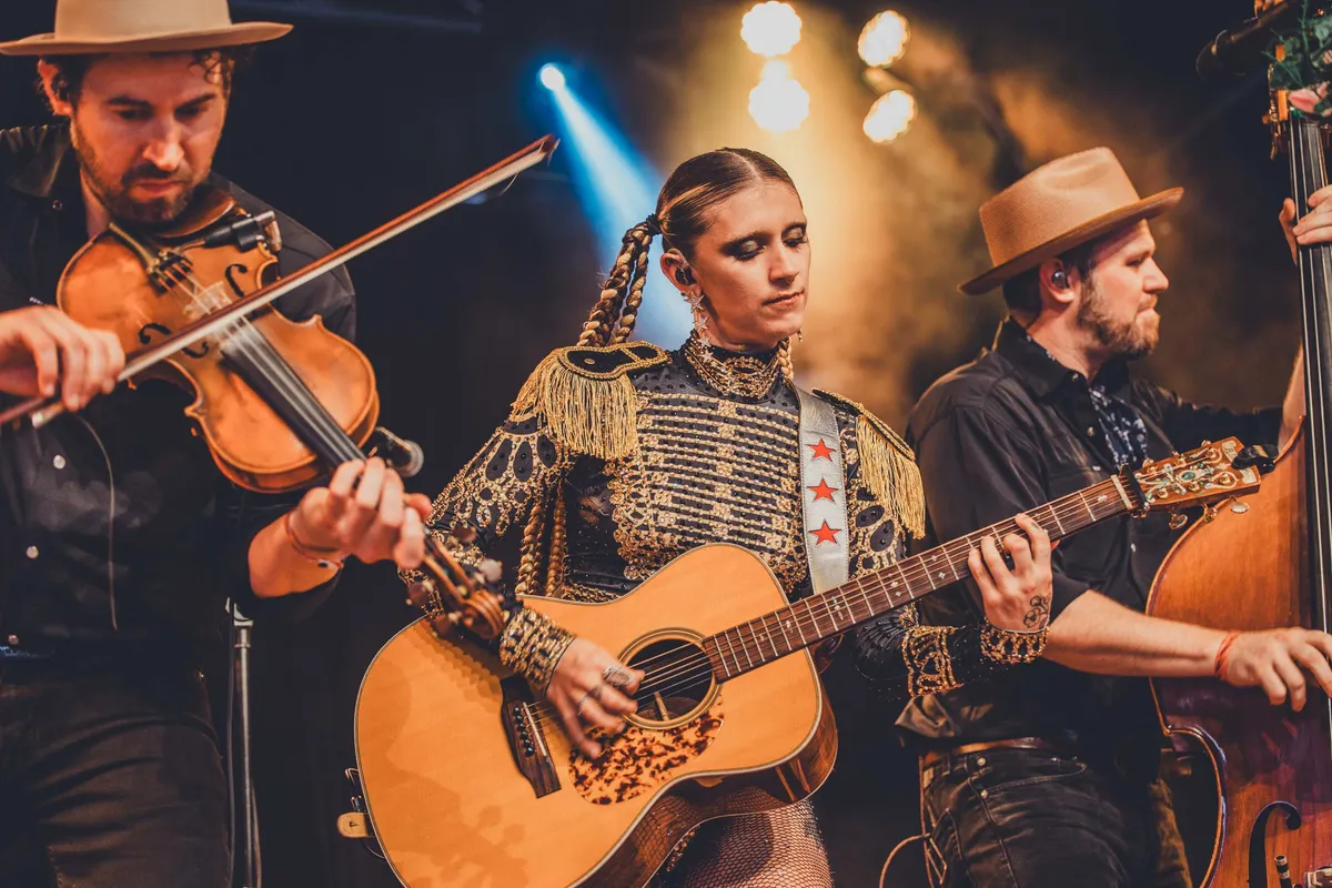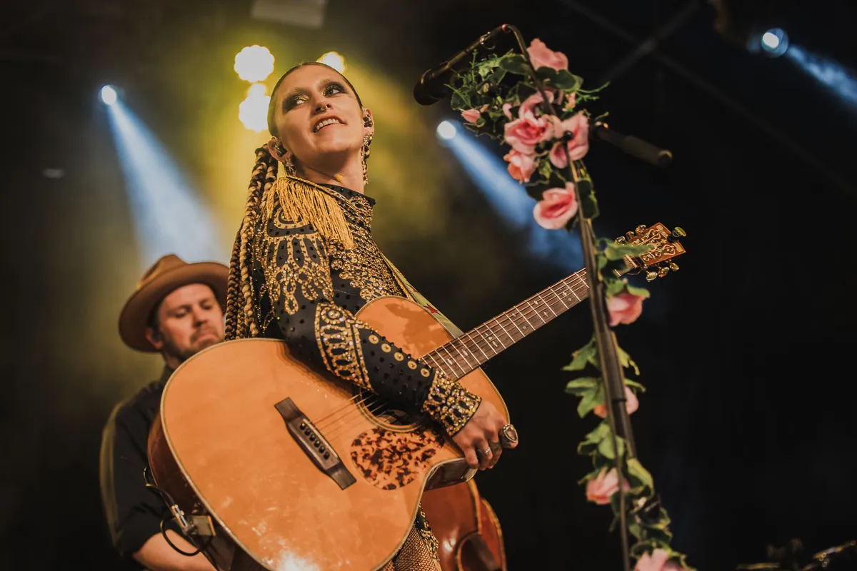 Wauw, wat ziet dit er sick uit! Sierra Ferrell draagt een goud glitterbadpak met admiraalsstrepen op haar schouders, met hoger dan hoge naaldhaklaarzen. Onder haar linkeroog prijkt een langwerpige tatoeage. Om haar heen staan drie cowboys met een mandoline, een contrabas en een fiddle. Met hun mondhoeken stoïcijns naar beneden vullen ze haar adempauzes met korte riedeltjes. Als Clint Eastwood staren ze naar de horizon, terwijl ze de sterren van de hemel spelen. Maar de echte ster fonkelt hier in het midden. Ferrell is met haar heerlijke country-rasp misschien wel de beste zangeres van het weekend.