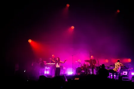 Ze voelen als kleine groeipijntjes, die momenten dat de tekst net het momentum stopt dat de band zo hard aan het opbouwen is. Waar het eerste half uur aanvoelt als een mengeling van de Wende van de laatste twee albums en de classic theaterartiest die precies weet welke klanken het verst dragen als ze onversterkt moet zingen, gaat er na een half uur een knop om. Opeens is de Heineken niet meer te groot. In het outro van 'Weggegeven' galmt er opeens een EDM Bolero door de Heineken. Weird, op plaat best wel dom, live te gek. Vanaf hier is het opschakelen, via nog meer housy dance, langerekte instrumentale stukken waar de synths en drummer de hoofdrol opeisen, stroboscopen. Terwijl het zweet de make-up van Wende’s gezicht gutst, ontploft ook de Heineken. En nog eens meer als S10 ook nog een nieuw nummer mee doet. Dat had de beglitterde partygroep toch goed ingeschat.