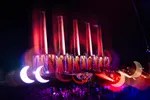 Haak vervolgens aan bij de slingers vrienden die naar de Bravo bewegen, en dan blijkt er nog een verrassing te wachten. De Australische drilltechno-ster Skin On Skin werkt in zijn eentje naar zijn virale superhit ‘Burning Bridges’ toe met een lekkere no-nonsense technoset die niet plat of saai voelt en overloopt van het plezier. Maar opeens staat daar ook zijn labelbaas en maat van down under Mall Grab voor een spontane b2b. Supercute: zelfs de Nederlandse hiphopproducer - thans househeld, Flansie haakt nog even aan om een paar nummertjes mee te draaien. Ze vallen elkaar steeds weer in de armen. De tracks die ze draaien zijn opgewekt en vrolijk. Daarna draait Mall Grab nog een uurtje alleen door. Hij kiest voor degelijke bigroomhouse-platen met genoeg momentjes om alle stokken, opblaaskaketoes en glow-in-the-dark-sticks in de tent nog wat harder heen en weer te laten zwiepen. Een grime-vocaltje hier, daar een break waar een regenboog aan piano’s uit komt rollen, een ‘Technologic’-sampletje en ook een plaat als ‘Music Sounds Better With You’ landt hier natuurlijk als een bom. Echt een prima set, maar het blijft gek dat de man die stoere cross-over-dansvloerhits uitbrengt op zijn eigen label zulke veilige keuzes maakt in zijn sets.