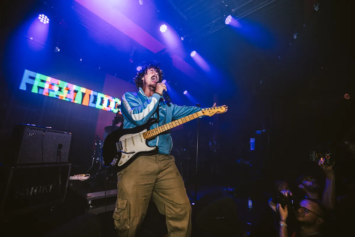 Tijdens corona ontstond het idee om een band te vormen als reactie op de andere Londense bands die zichzelf heel erg serieus nemen. Met hun intense clash van klezmer, dance en punk had Fat Dog al snel een flinke livereputatie te pakken bij The Windmill, het inmiddels iconische poppodium waar ook acts als black midi en Black Country, New Road hun eerste stappen zetten. En vanavond voel je meteen dat deze band op en voor het podium is geboren.