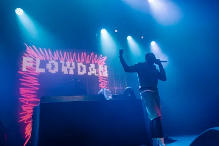 Het puilt uit bij de X-Ray en dat is niet zonder reden. Hier is Flowdan, de koning aller MC’s in levende lijve. Of in ieder geval, hij zou er al moeten zijn toch? Tien minuten te laat komt hij op zijn gemak het podium opgelopen, maar met zo’n indrukwekkend CV kun je dat ook prima doen zonder dat er iemand boos wordt. Flowdan is de eerste grime MC ter wereld die een Grammy heeft gewonnen, en als je hem zo ziet, snap je ook wel waarom.