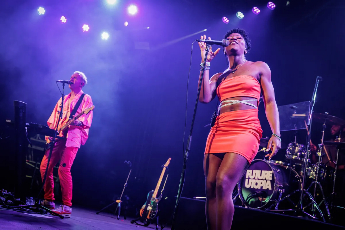 Live wordt Smith bijgestaan door een drummer en een zangeres. Zelf speelt hij gitaar, soms wat synths en de rest komt van een tapeje. Het zijn ietwat inwisselbare, maar leuke liedjes vol dikke discobeats en trippy gitaarloopjes. Vooral de nieuwste single ‘Casino’ komt goed uit de verf. En telkens als het trio het tempo opschroeft en iets produceert dat op een housebeat lijkt, klinken overal kreten van bevestiging. Dat het western thema zo uit de lucht lijkt gegrepen en de teksten vooral nergens over gaan, maakt dan niet zoveel uit. Future Utopia is als een fata morgana in de woestijn: er blijft weinig van over wanneer je dichterbij komt, maar het is wel een fijn gezicht.