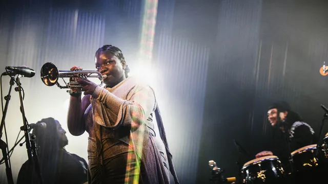 Goed nieuws en slecht nieuws: Kokoroko mist vandaag een trombonist en een saxofonist vanwege een gemiste vlucht. Balen, want het zijn juist de harmonieën van blazers en vocalen die de Londense jazzgroep hun kenmerkende melancholische sausje geeft. En het goede nieuws? Er zijn dan nog zes topmuzikanten over, die met hun relaxte mix van highlife, afrobeat, en jazz de doorgebroken zon kracht bij komen zetten. ‘Kokoroko’ betekent ‘wees sterk’ in de Zuid-Nigeriaanse taal Urhobo, en dat mag de groep nu laten zien. Als echte jazzcats improviseren de overgebleven zes zich door de set heen.