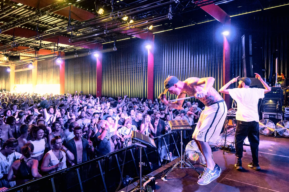 Dat is allemaal te danken aan de bizarre energie van de twee. De één staat de diepe subbassen werkelijk uit z’n drumpads te rammen, terwijl de ander achter zijn decks hun eigen tracks aan elkaar draait. De vraag is wel hoeveel hij nou echt live doet, hij is vooral druk met rondspringen en zijn armen als een malle rond te zwaaien. En dat werkt als een tierelier: bij elke nieuwe break gaat het publiek nog net iets harder uit z’n dak. Reggae vocal hier, hardcore synth-lijntje daar en dan weer door naar een sample van Little Simz’s ‘Gorilla’: het uurtje jungle staat geen moment stil, nét zo hyper als de twee zelf. Hoeveel die live-elementen nou toevoegen weten we na een uur nog niet echt zeker, wél dat 4am Kru gewoon verdomd leuk is. Volgende keer dan toch maar gewoon lekker twaalf uur later programmeren?