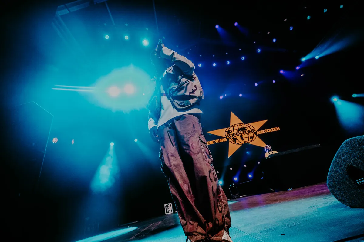 En dan hebben we nog niet eens zo veel aandacht besteed aan Kofi’s rapskills. Hij wil een track doen waarvan een fan hem ooit zei dat hij het niet live gedaan kon worden vanwege z’n waanzinnige vaart. ‘There’s only one way to find out.’ De bars van ‘Busker Flow’ schieten met de maximumsnelheid van je favoriete VVD’er z’n mond uit. De liefde die hij het publiek geeft, krijgt hij minstens zo hard terug.