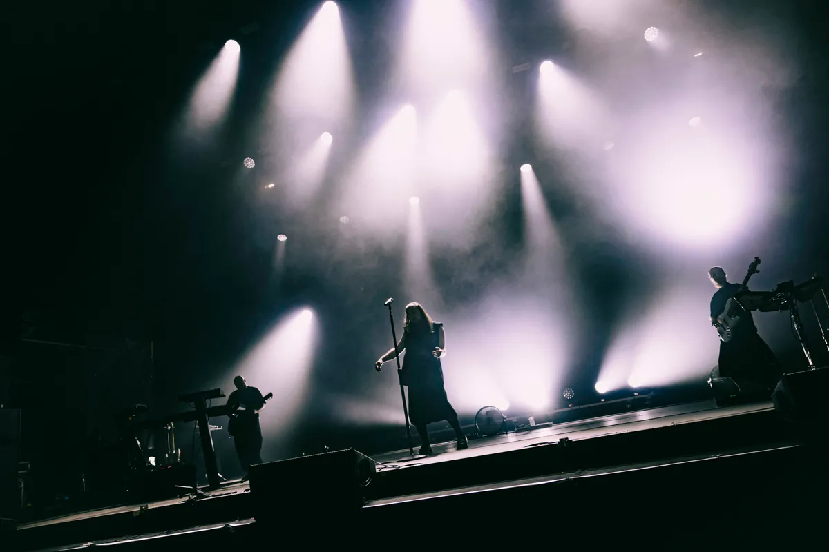 Het is brutalisme in muziekvorm. De show voelt aan als een eindeloze leegte, waarin je kunt ronddwalen tot je gek wordt, en bij elke noot denkt ‘ben ik hier niet eerder geweest?’ Maar zodra je de hoop op een aanknopingspunt laat varen, valt er toch veel moois te bespeuren. Dat vleugje The Cure in ‘Тоска’ (melancholie) doet het goed, net als die gedragen synthpop van ‘Сон’ (zoon). En wanneer ze voor ‘Дискотека’ de drummachine (een Linndrum LM-2, voor de nerds) echt hun werk laten doen, bewegen ze zelfs richting de disco. Een regenboog in grijstinten.