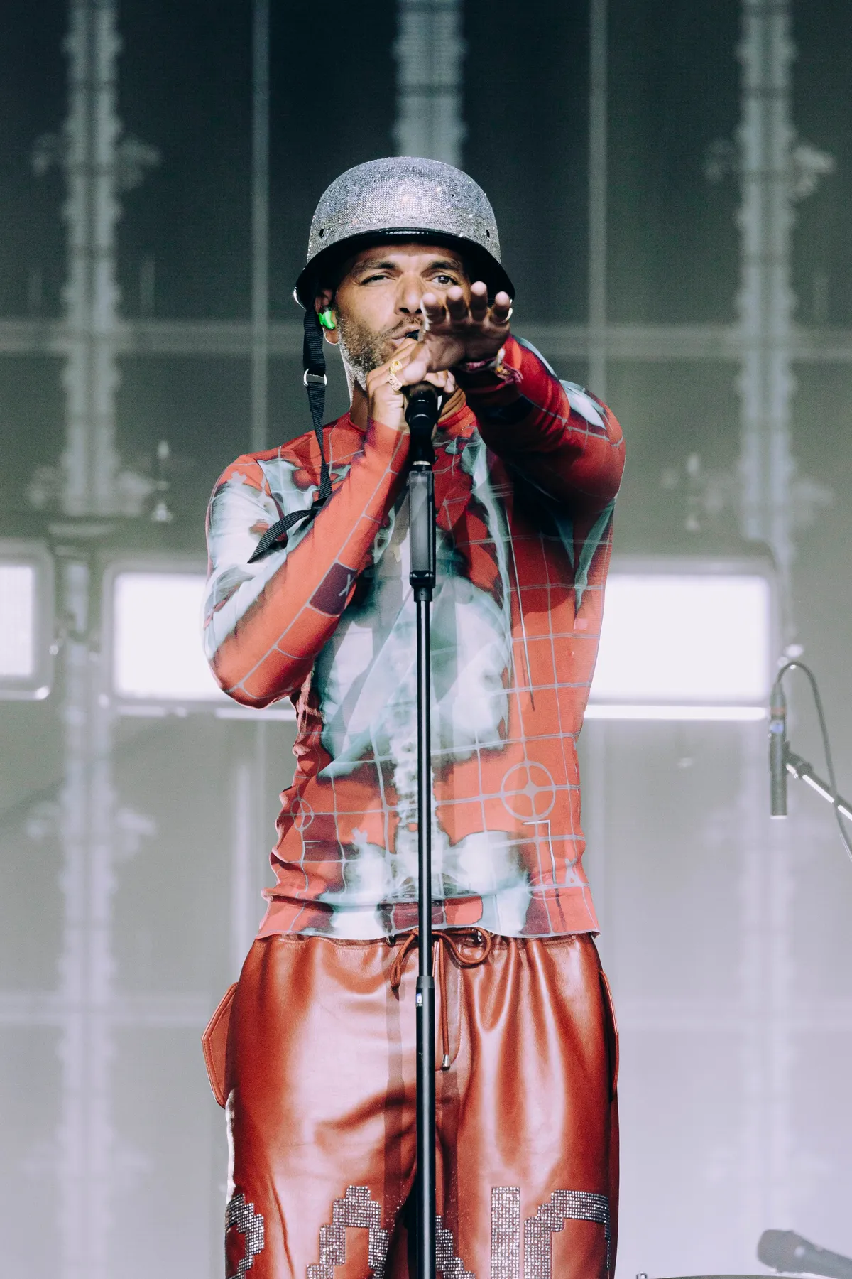 Best bijzonder dat hij die stap maakt met lieve monsters, een dansbare maar vaak ook duistere, soms wanhopige plaat, waarop hij zich dikwijls afvraagt: wat als het te laat is om de wereld te redden? Hoe houdt je je überhaupt staande in een wereld waarin je wordt doodgegooid met afschuwelijk nieuws, over het klimaat, volkerenmoord, crisis na crisis? Wat rest ons dan, behalve dansen op de vulkaan? Dansen + huilen dus (Sef en Lowlands maakten zelfs officiële merch met die slogan) en om dat punt bij te zetten, staat er een aluminium vulkaan aan de andere kant van de Alpha. Zijn andere visuele keuzes zijn relatief simpel doch effectief: een clean presentatie met tegenlicht en schermen. Daarop flitsen vooral simpele vormen, teksten en losse woorden voorbij, naast ook vlaggen in ‘Land Dat Bestaat’ van Ik Zou Voor Veel Sterven, Maar Niet Voor Een Vlag. En er is een driekoppige band, met synthdude en drummer, die af en toe hun momentje mogen pakken: die jazzroffeltjes en spannende break in ‘In Den Beginne’ zijn te gek.