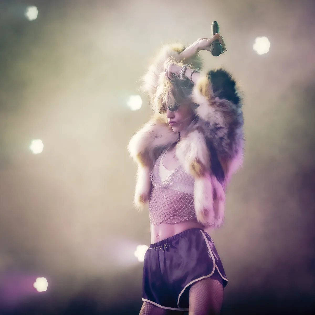 Wow, wat is Suki Waterhouse cool. Haar outfit, haar perfect rommelige kapsel, geaccentueerd door een ventilator die precies op de juiste manier in haar gezicht blaast. Met bezwerende armbewegingen à la Stevie Nicks danst ze over het podium. Soms staat ze stil in een rockster-powerpose: microfoonstandaard in de hand, één arm omhoog, één knie gebogen. Geen wonder dat de 32-jarige Engelse gecast is als een van de hoofdpersonages in Daisy Jones & The Six, een televisieserie over een gefictionaliseerde versie van Fleetwood Mac: de rol van rockster past haar perfect.