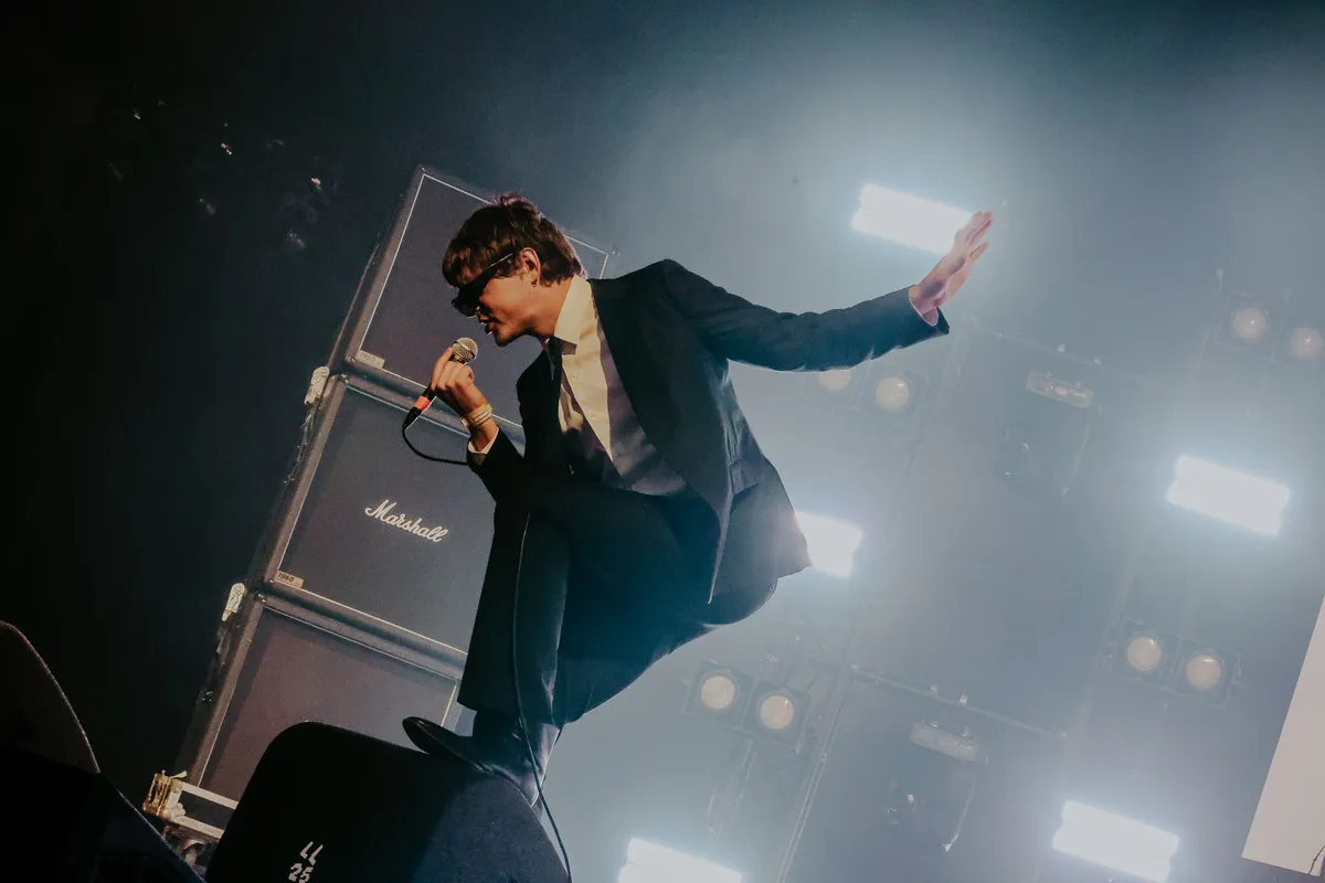 Aha! Dus dáárom draagt die vent altijd een zonnebril. De witte lichten in de India flikkeren op het standje oogverblindend, maar als je goed met je ogen knijpt kun je het net zien: hoge stapels Marshallversterkers, een mixer, een synthesizer, en daartussen een slungelige gast in een simpel zwart pak en dito zonnebril. Dit is The Dare, de posterboy van de indiesleaze revival. Met zijn overstuurde dansbeats en vunzige teksten steekt hij de India aan het begin van de zaterdagnacht wat peper in het reet.