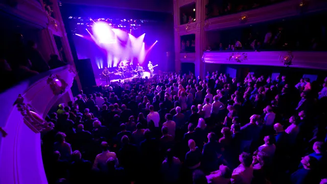 Exact dertig seconden hangt er daadwerkelijk een theatersfeer in de grootste zaal van de Koninklijke Schouwburg. Eerst gaat een man voorin wat aarzelend staan, maakt opzwepende gebaren naar de rijen achter hem, maar ploft hoofdschuddend weer neer als reactie uitblijft. Hij is amper gaan zitten als achter hem de stoeltjes massaal opveren: Local Natives maakt in no time van de statige Royal een kolkend poppodium met dansende mensen en lege bierbekers op het hoogpolige tapijt.