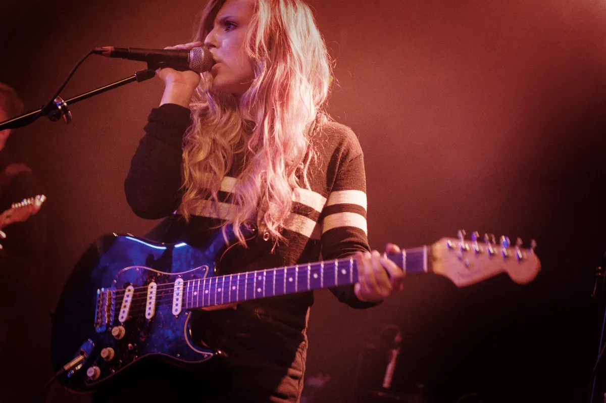 Het is alsof de frontvrouw van Lola Colt zo uit HBO-serie Carnivale gestapt is. Na dagen rondtrekken met een kermiscaravaan in het Amerika van de jaren twintig, het stof net afgewassen, haar meest chique outfit aangetrokken voor het optreden. En dan volle bak bezwerende woestijnrock uit de tenen persen. Die frontvrouw is meteen ook de grote troef van de band. Telkens als ze niet zingt staart ze roerloos en zonder te knipperen de zaal in. Dreigend, schijnbaar recht in de ogen van een willekeurige bezoeker. Alsof Nick Cave een bloemetjesjurk heeft aangetrokken en zich een boblijn heeft laten aanmeten.