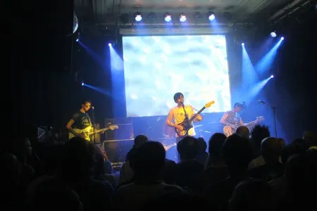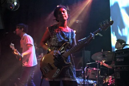 Hoewel dat oogverblindende meisje in het snoezige jurkje niet de meest technische bassiste is, speelt ze kordaat genoeg om de straffe drummer bij te houden. Soepel, een beetje losjes, maar precies zoals het moet. Deze April Aliermo verdient sowieso de nodige credits als mede-songschrijver naast frontman Daniel Lee. Saillant detail: die twee hadden iets met elkaar en schreven liedjes over het einde van die affaire. Kennelijk ligt het nu ook weer niet zo gevoelig, want een voorzichtige flirt op het podium kan nog altijd. Lee is een jongen met een latino-uiterlijk (dat zal dan wel Portugees zijn?) en een nonchalante, uitnodigende uitstraling. De tweede gitarist hoeft niet zo nodig het volle licht op zich te hebben, maar hij speelt wel vaak de spannende, fuzzy riffen. Al met al een uitstekend op elkaar ingespeelde band die weet hoe je een garagerock-groove neerzet. Voor de gemaskerde bandieten op hun albumcover hoef je overigens niet bang te zijn. Dit is niet het type garageband dat wastafels uit kleedkamers rukt of elkaar in de bek spuugt op het podium, maar braafjes is het absoluut niet. Opvallend hoogtepunt: het enige trage liedje in de set, de sixties slijper Den Of Love.