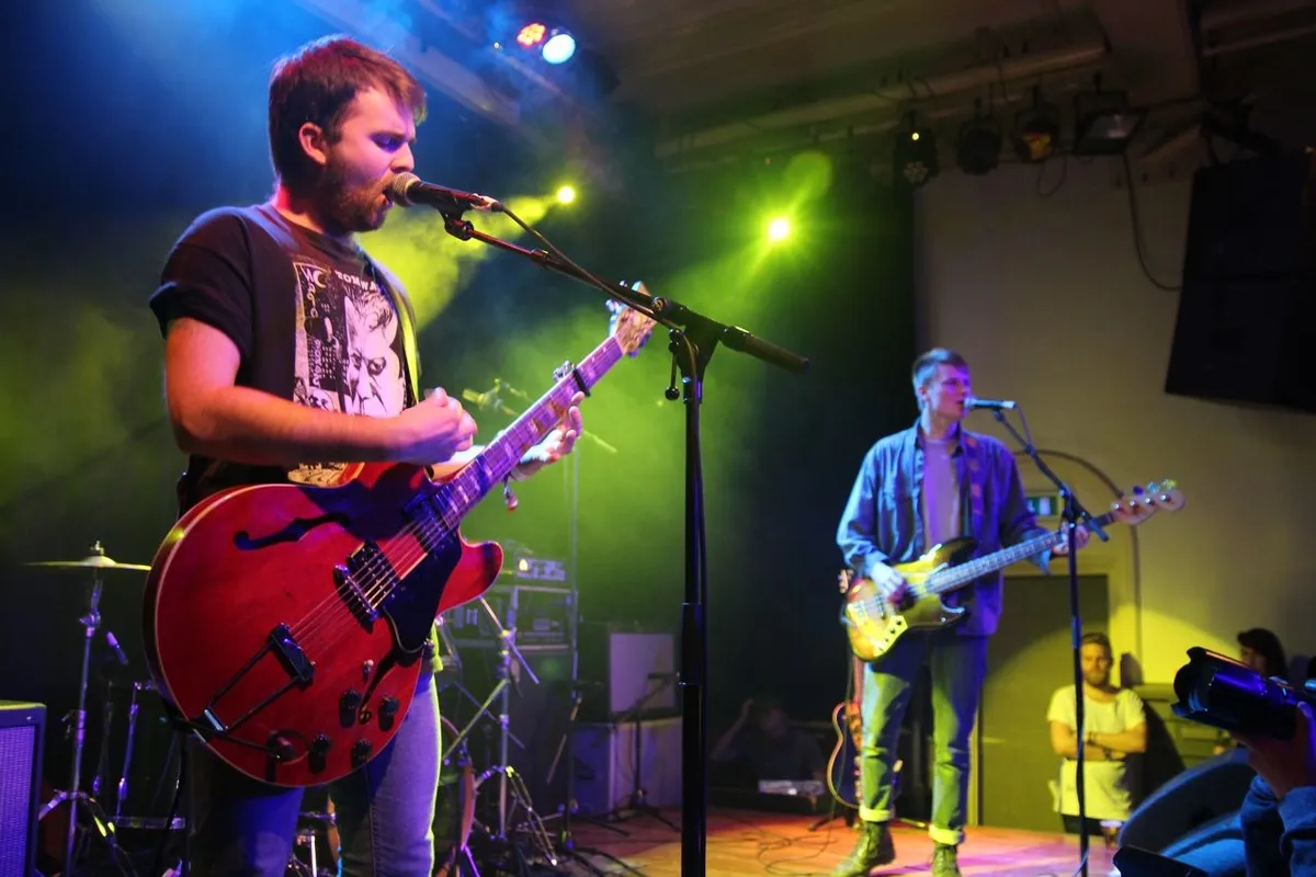 Vier jongens uit Brighton die wat meer uitgesponnen pop en rock maken. Bij vlagen nogal pathetisch gezongen door Thomas Savage, het is dat er een drummer zeer verbeten aan het werk is en dat hij het tempo wat opvoert. Verder veel ijle gitaar- en vooral synthlijnen, breaks en tempowisselingen die het geheel toch een wat neuzelig, arty cachet geven. Savage speelt op sokken, een grijze en een witte welteverstaan, en staat graag met de rug naar het publiek heen en weer te bewegen, als iemand die er nu eens als vechtsporter en dan weer als schaatser uitziet. Het onderlinge contact oogt minimaal en dat lijkt voor het spelplezier ook te gelden. Nee, Kins spat bepaald niet van het podium af. Maar daar beginnen ze halverwege even gezamenlijk aan een dwars nummer zeg. Kijk: het kan wel. Laat die drummer maar leiden. Sowieso beschikt Kins over een jaloersmakende ritmesectie. Gaandeweg wordt de band steeds leuker, naarmate ze meer opschuiven richting dwarse post-rock. Hoogtepunt is het stuwende slotnummer Mockasin's. (Ingmar Griffioen)