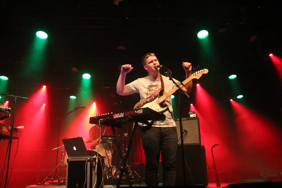 Nederlandse nieuwkomer Klangstof verwelkomt de langzaam vollopende Noordzaal met een serieuze, duistere en hypnotiserende instrumentale track. Vervolgens begroet frontman Koen van de Wardt het publiek: “Yo swaggers!” Het contrast is schril, maar ook wel innemend. Als Van de Wardt zijn songs speelt is hij even in een andere wereld, vol concentratie, focus en ongecontroleerde armbewegingen, maar tussendoor lijkt hij zich weer even te beseffen waar hij staat en daar wordt hij een beetje ongemakkelijk van. “Sorry, ik ben pas net frontman, dus ik weet nog niet zo goed wat ik moet zeggen,” grapt hij. Dat is een opmerking over een van die twee bands die tot dusver aan Klangstof lijken te blijven kleven: Moss. In die band speelt Van de Wardt bas achter frontman en songwriter Marien Dorleijn, en hij heeft er ook twee van zijn andere Klangstofleden vandaan. Die andere veelgenoemde naam als het gaat over Klangstof is Radiohead. Daar heeft Van de Wardt geen bandleden mee gemeen, maar wel een aanzienlijk deel van het geluid. Al meerdere acts hebben vandaag bewezen dat je niet per se met een heel nieuwe sound hoeft te komen om goede muziek te maken, en dat geldt ook voor Klangstof: nummers als We Are Your Receiver en Hostage zijn inderdaad Radiohead-esk, maar ook op zichzelf spannend, sfeervol en melodisch. Toch komt de gelijkenis misschien ook wel voort uit dat de band nog enigszins zoekende is. Aan songs als Ignore Me, met z'n lekker weirde synthesizerriffje, is te horen dat er daadwerkelijk een experimenteler en meer eigen geluid in Klangstof zit.