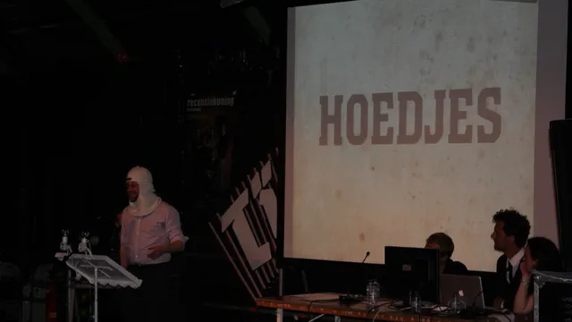 Binnen is het bij gebrek aan gedans goed te doen. Het team achter Recensiekoning is in de gedaante van Ruben Steeman, Martine de Jong, Olaf en opperkoning Arjen Lubach aanwezig. Iedereen neemt een voor een plaats achter de microfoon om hun verslag, ondersteund met lichtbeelden, toe te lichten. In rap tempo wordt het sanitair gefileerd, de eerste bezoeker, de onmogelijkheid om met elkaar af te spreken, het eten, dubstep, alles.