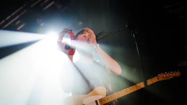De heren van Django Django staan er lekker retro bij, met allemaal hetzelfde paarse-met-grijze-stippen t-shirt aan. De Bravo staat volledig vol. En vooral dankzij het catchy hitje Default. Maar ook al is Django Django nog redelijk onbekend, bij het publiek gaat het er als zoete koek in.