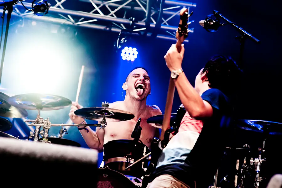 Het enige wat nog mist zijn stagedivers die als lemmingen zich massaal in het publiek storten. Daar is de Grolsch te hoog en te gereguleerd voor. En ja, zelfs Enter Shikari, die toch echt wat gewend zijn wat betreft liters zweet lossen, mopperen een paar keer over de temperatuur.