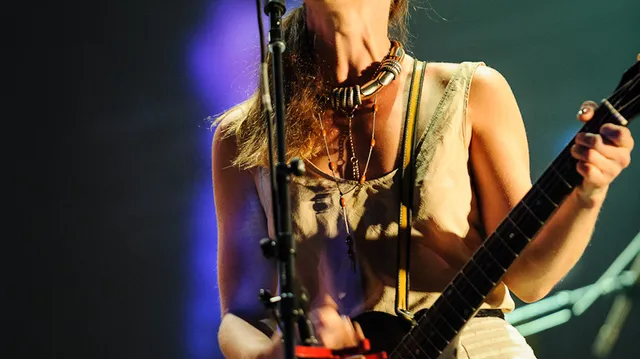 Feist bespeelt haar gitaar alsof ze ergens last van heeft, haast alsof het ding kapot moet. Haar rauwe gitaargeluid klinkt alsof er schuurpapier over een box gewreven wordt, en dat is een kant van Feist die we niet vaak horen. Het driekoppige zangkoor heeft door de aankleding (lees: tentjurken) wat weg van de twee enge stiefzussen van Assepoester. Zo zingen ze overigens niet, dit achtergrondkoor vult Feist mooi aan waardoor het optreden een harmonieuze extra laag krijgt. Opener 'Mushaboom' laat direct zien hoe deze set zal worden: hard. Een stuk harder dan op plaat, en dat is goed want in halfvolle Grolsch heeft nu al moeite om de aandacht erbij te houden. Dat probeert Feist recht te trekken door wat publieksparticipatie. Ze deelt het publiek op in verschillende delen en laat ze net een andere noot zingen. Daarmee leidt ze dan het prachtige luisterliedje 'So Sorry' in, dat wonderwel werkt. Als Feist solo speelt is ze overigens uitstekend te verstaan, zo komt ze ook het best tot haar recht vanavond. In deze opgevoerde versie krijgen we wel nog 'Limit To Your Love' te horen, waar de Brit James Blake zo'n succesvolle cover van maakte.
