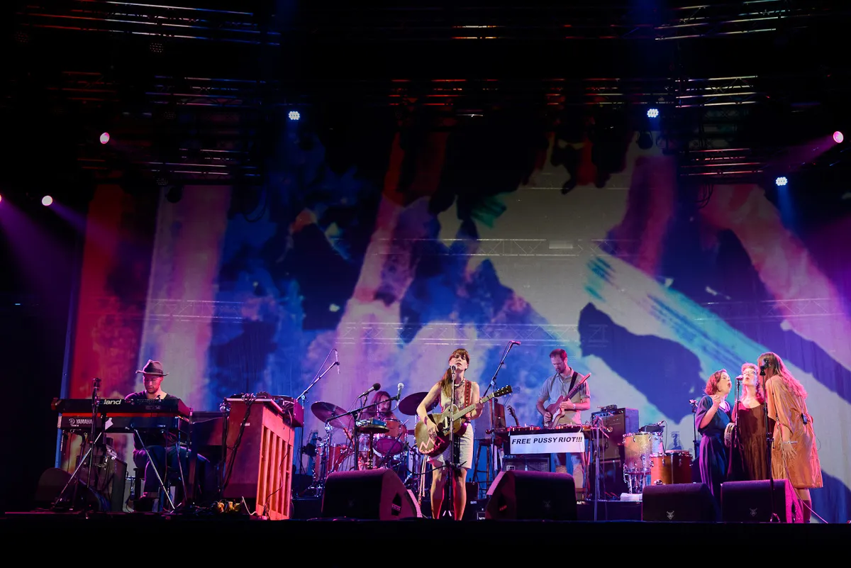 Feist op z’n Feists werkt alleen in een zaal waar iedereen z’n mond houdt en luistert. Dat er op Lowlands voor een aanpak met wat meer beuk is gekozen is dan ook terecht. Wel overstemt de extra power het middelpunt van de aandacht, wat een minpuntje is. De zwakke setopbouw levert een gezapig optreden op, waar het nergens echt sprankelt. En we zien Feist toch graag sprankelen.