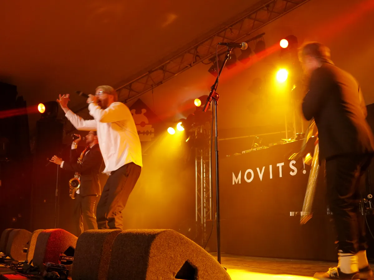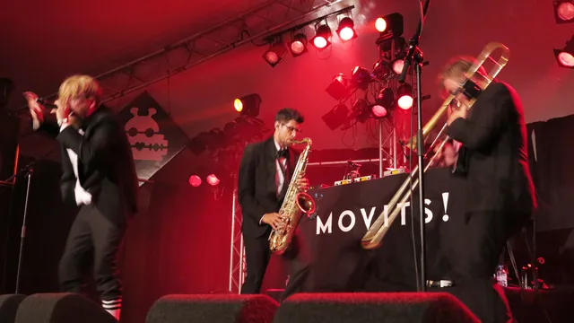 Movits! is een kwartet muzikale Zweden. Twee ervan spelen zalig op sax en trombone, een derde dj't en de laatste rapt. Het resultaat is een aanstekelijke mix van jazz en rap in het Zweeds. We verstaan er geen bal van maar het geluid doet ergens denken aan Caro Emerald en ook aan het Nederlandse jazzcollectief Bruut!. De mannen komen op in smoking, met hun broekspijpen in hun stokken gepropt, en op het eind hebben ze allemaal nog een wit hemdje aan. Het is ook enorm warm.