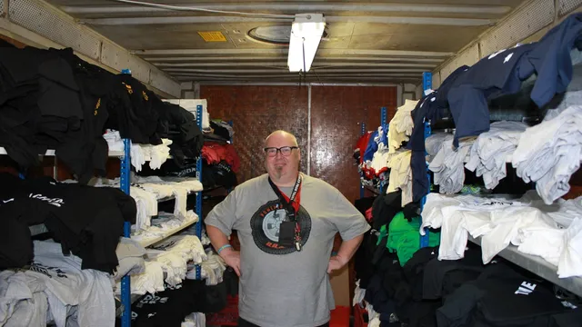 De korte uitwisseling tussen merchandisebaas en band geeft in een ogenblik weer wat voor soort vent Toussaint is; eerlijk, gewiekst en ervaren. 23 jaar geleden begon hij met Bart Vriesema Thanx Merchandising dat zich voornamelijk specialiseert in T-shirts. Iedere editie van Lowlands werd aangedaan. De huidige zal niet de boeken in gaan als een goede. 'Het weer is veel te goed,' verzucht hij. 'Ideaal is rond de 24 graden en af en toe een buitje zodat mensen in beweging blijven. Nu ligt iedereen in het gras en staan ze straks als zombies weer op.'