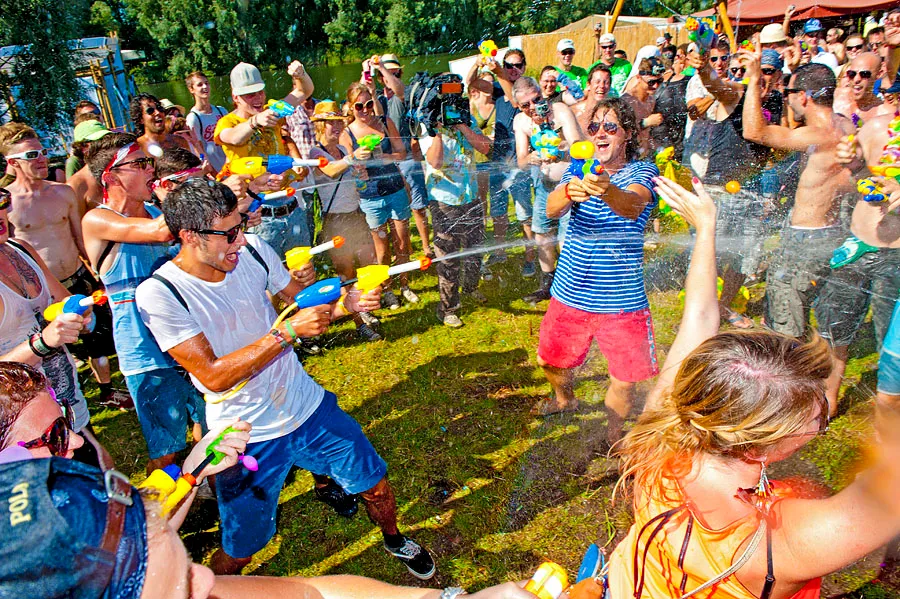 Ongeduld speelt een grote groep parten. Een kwartier voor aanvang is het gros van de belangstellenden bij Charlie aanwezig en her en der ontstaan al kleine vechtpartijtjes, vliegen de ballonnen door de lucht en is gek doen voor de camera het devies. Op geen enkel moment breekt het watergevecht uit in een massale gekte en is er onduidelijkheid over wanneer het nou echt mag beginnen. Enkele groepjes tellen af, maar ook daar blijft het bij lokale buien.