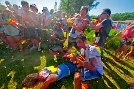 Het Grote Lowlands Watergevecht dus. Begin deze week raadde initiator Ferry Ploeger nog aan om bij de toiletten van de Charlie de flessen en waterpistooltjes te vullen. De locatie werd, na een ongelooflijke boost aan deelnemers, veranderd in de toiletten van de Alpha om vervolgens naar het strand bij Charlie te gaan. Begintijd om exact 16.15 uur, zaterdag 18 augustus 2012