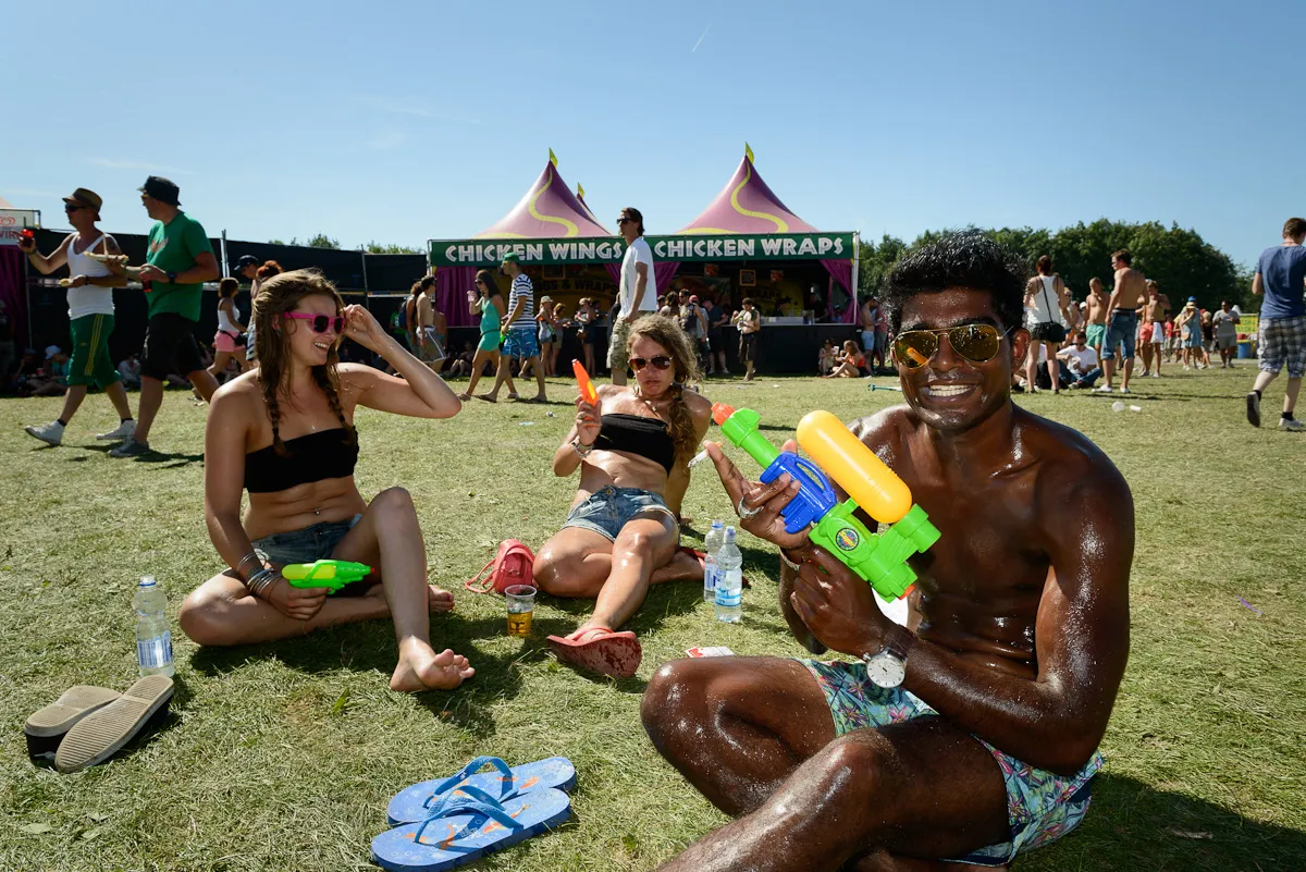 Het gesprits van waterpistolen, geklets van waterballonnen op de grond en gegil van slachtoffers vervult de gesmoorde lucht die op haar beurt gevuld is met een walm van zonnebrandcreme, deo en vers zweet. Op de achtergrond klinkt muziek van Fidlar dat zich op het podium van Charlie zal afvragen waarom het feestje daar is en niet hier. En waarom de waterratten dat schreeuwen wat zij denken.