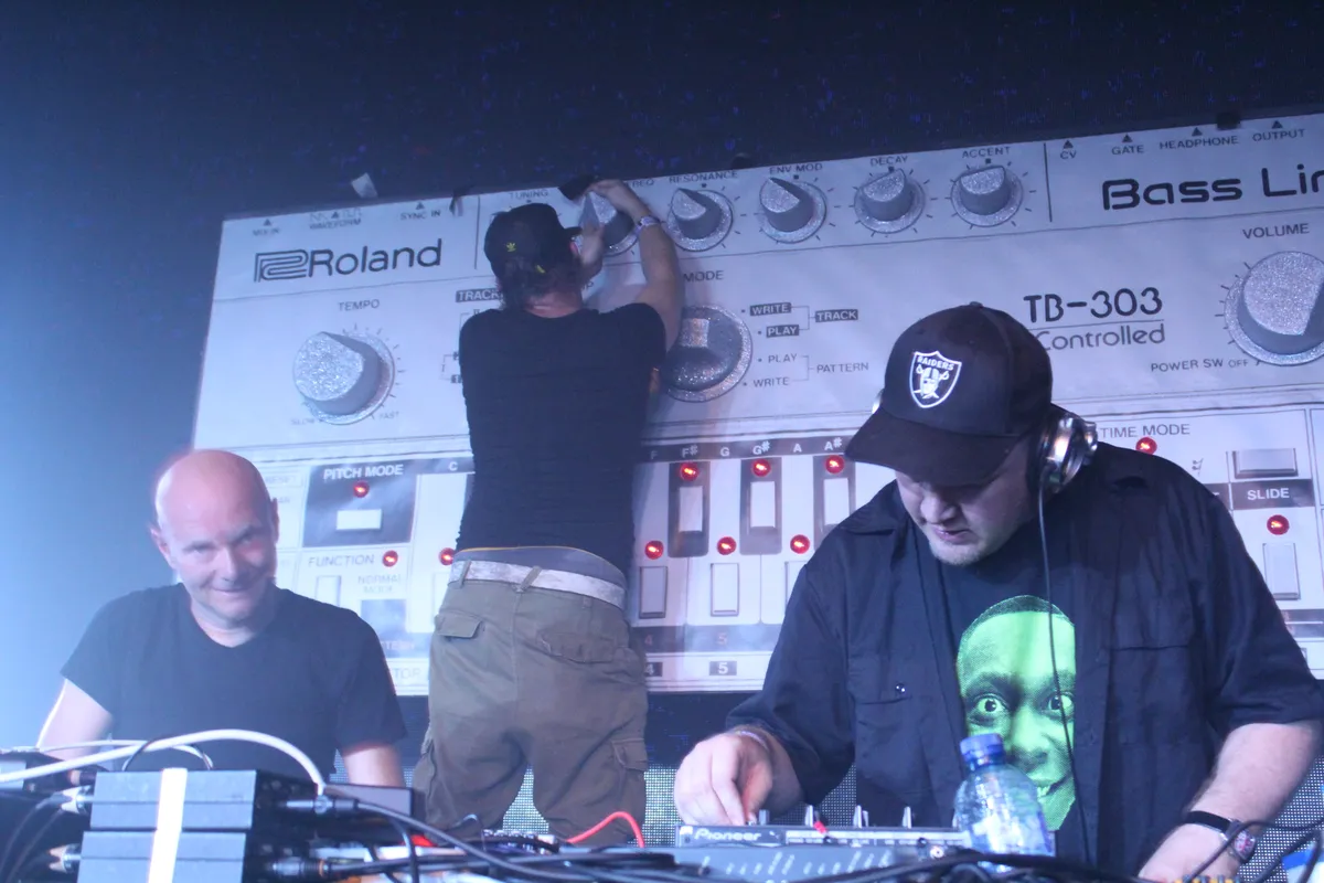 Komende nacht is de X-ray de speeltuin van drie jonge Britse honden, Objekt, Actress en Blawan. Smaakmakers van de Britse elektronische underground. Maar voor het zover is, geven drie Utrechtse dj's graag even geschiedenisles. Acid, jongens en meisjes, is analoge pruttelende housemuziek uit de vorige eeuw, gemaakt met een piepklein zilveren kastje: de Roland 303. Dansen erop kan eigenlijk maar op één manier: wild! De Utrechtse dj-vrienden Cosmic Force, Drifter en Maze (Acid P303wer) leggen het graag nog eens uit. Ze draaien platen van dertig jaar oud waar de kids vooraan enorm hard op gaan. Klassiekers van het Plus 8-label, kneiters uit Chicago en zelfs Dominator komen in moordend tempo voorbij. Boven het drietal hangt het fetisjobject in kwestie: een gigantische 303 met echt werkende draaiknoppen.